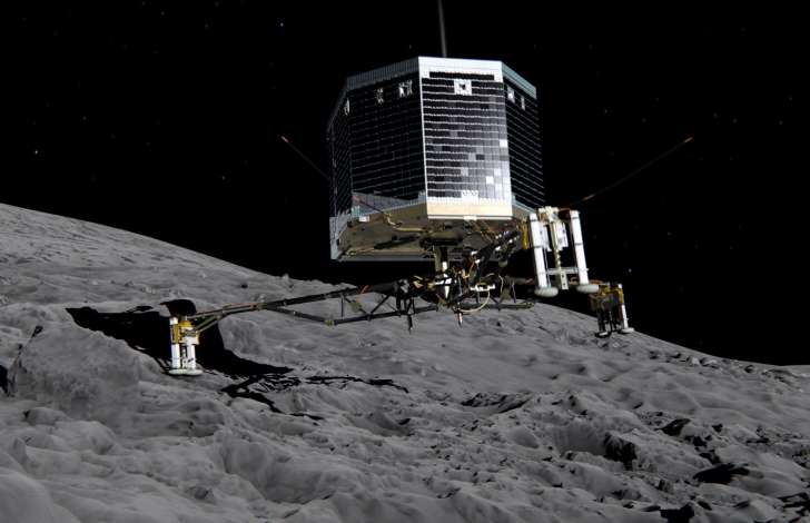 © ESA/Getty Images In this February 17, 2014 handout photo illustration provided by the European Space Agency (ESA) the Philae lander is pictured descending onto the 67P/Churyumov-Gerasimenko comet.